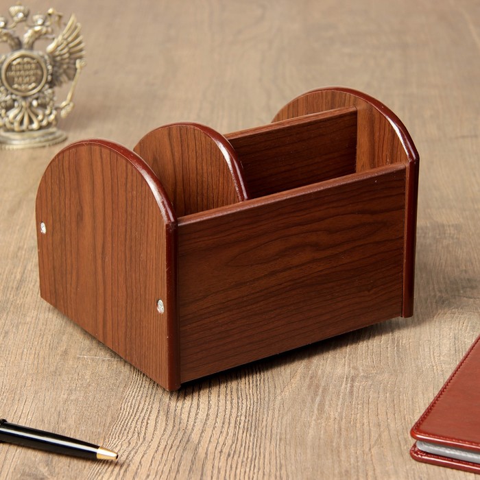 Органайзер настольный, 4 секции, под корич. дерево, вращается 8,5*16*14см