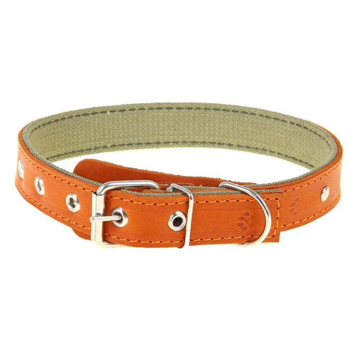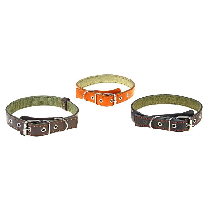 Ошейник комбинированный кожа/брезент, 2,5 см, украшенный, микс