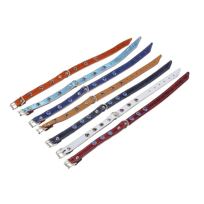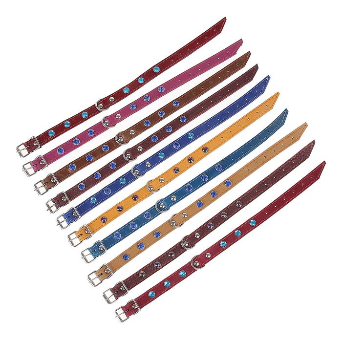 Ошейник кожаный двухслойный, 35 х 1,5 см, со стразами, микс цветов — это эластичный и надёжный аксессуар для вашего питомца. Он сделан из прочного материала, который обеспечивает изделию долгий срок службы.