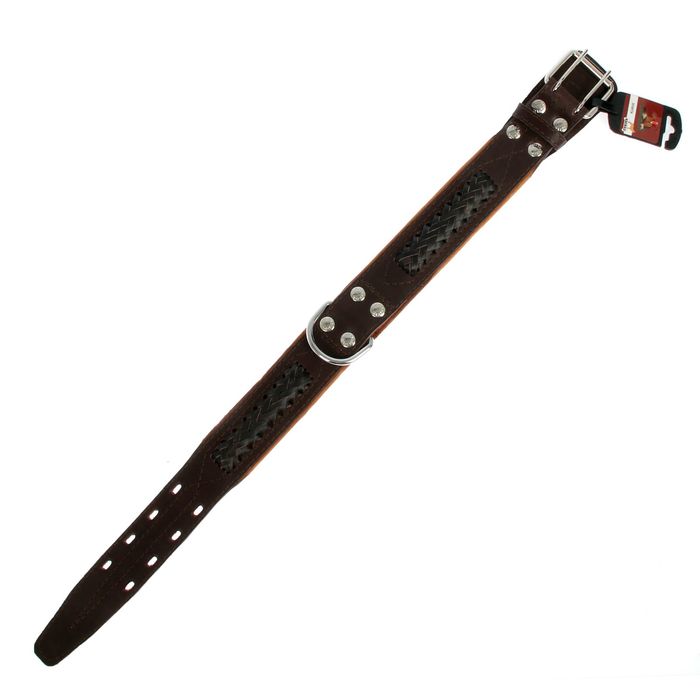 Ошейник кожаный "Элита" тройной, с косой в загибку с полукольцом, 51-60 х 4,5 см