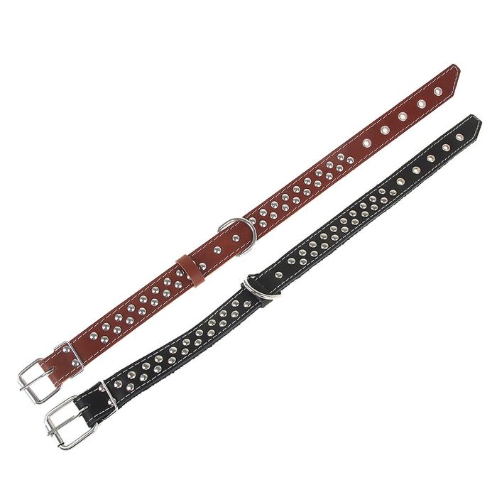 Ошейник кожаный однослойный, 60 х 3 см, клепаный, микс цветов