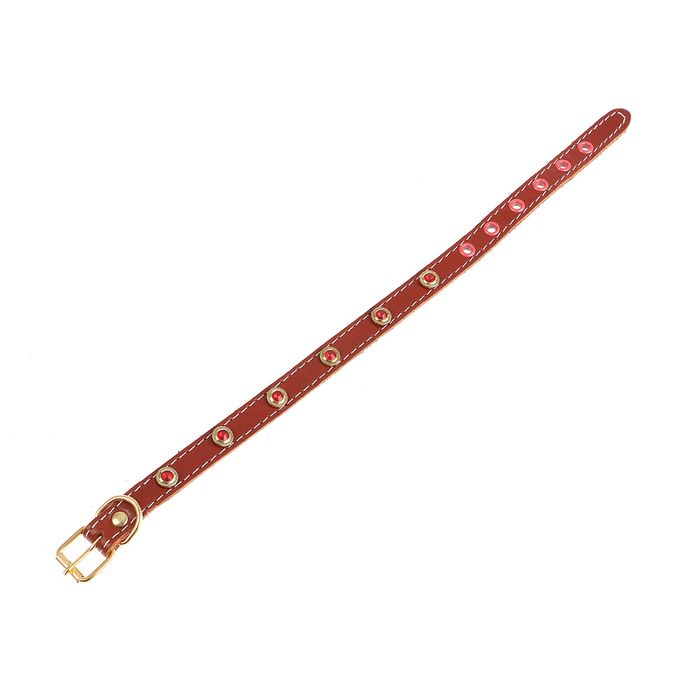 Ошейник кожаный с подкладом, 37 х 1,4 см, украшенный (микс видов и цветов) — это эластичный и надёжный аксессуар для вашего питомца. Он сделан из прочного материала, который обеспечивает изделию долгий срок службы.