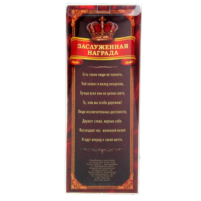 Оскар большой "Лучший муж в мире" на пластиковой подставке отличается от стандартных размеров, её высота – 25 см. Награду украшает душевная надпись, выполненная черными буквами на золотистом фоне. Статуэтку дополняет красивая подарочная упаковка из ПВС, которая придает ему еще более торжественный вид. На обратной стороне коробки вы найдете поздравительные слова – прочтите их виновнику торжества и вы увидите, как засияют от счастья его глаза.