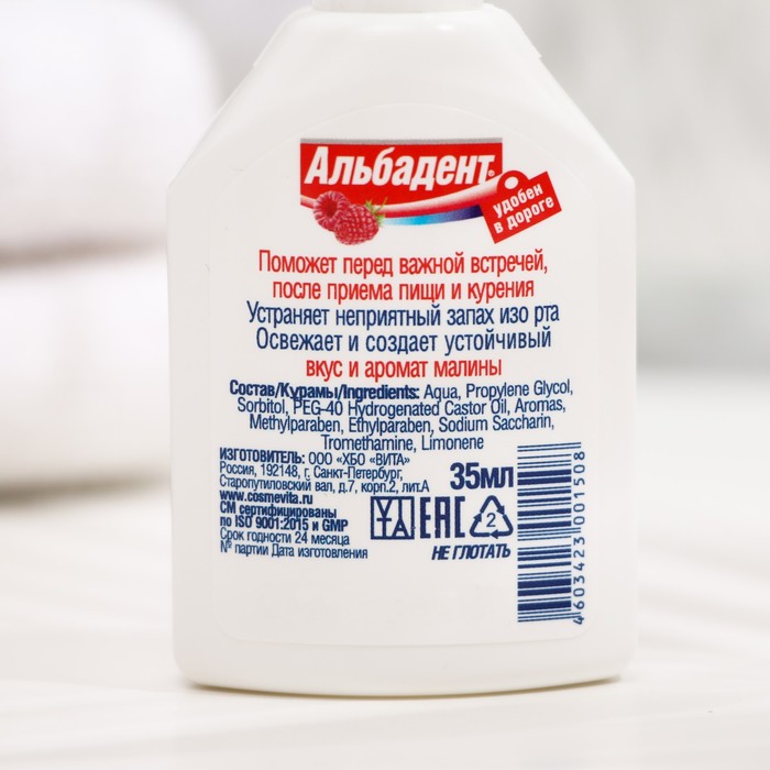 Освежитель полости рта Альбадент "Малина", 35 мл