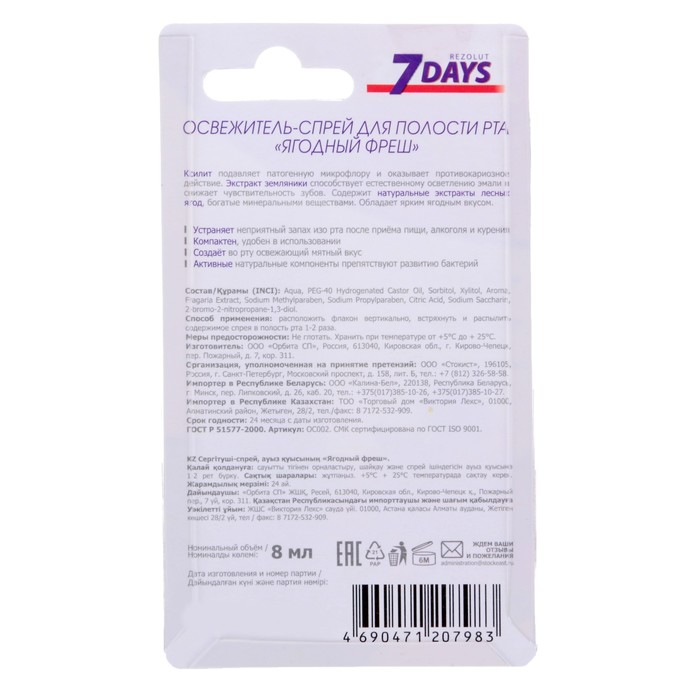 Освежитель полости рта D.I.E.S "Ягодный фреш", 8 мл
