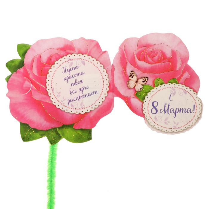 Этот цветок станет оригинальным дополнением к подарку или самостоятельным знаком внимания для близких и родных. Благодаря длинной ножке он украсит букет или упаковку сувенира. Внутри открытки с нежным дизайном написаны тёплые слова для получателя.