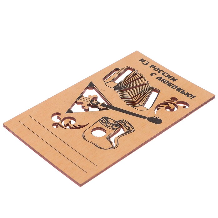 Открытка деревянная "Из России, с любовью" музыкальные инструменты