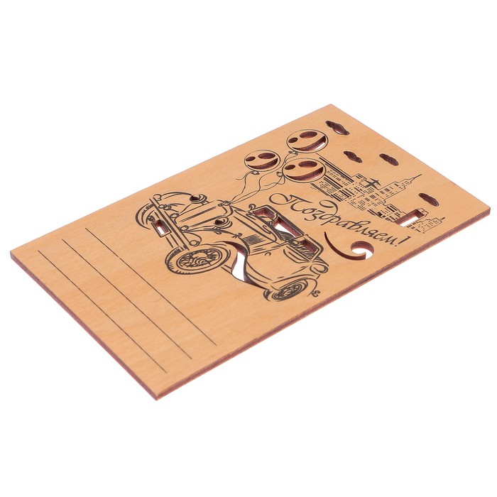 Открытка деревянная "Поздравляем" ретро автомобиль