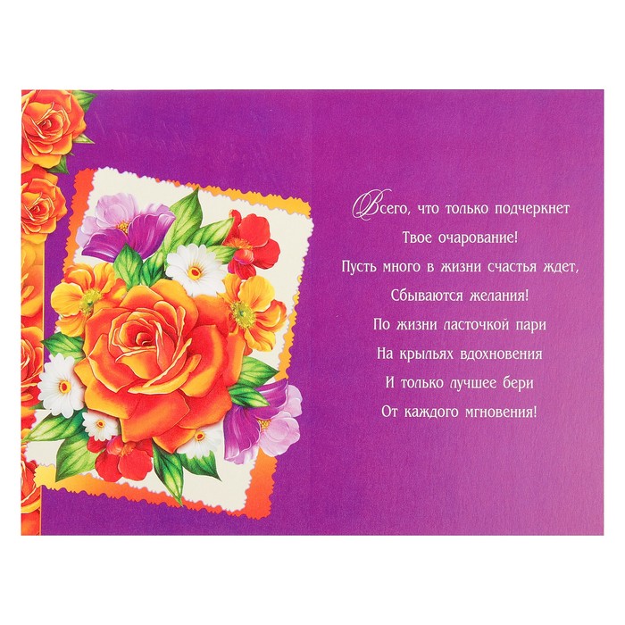 Открытка двойная "Поздравляем!", цветы, 19х25см
