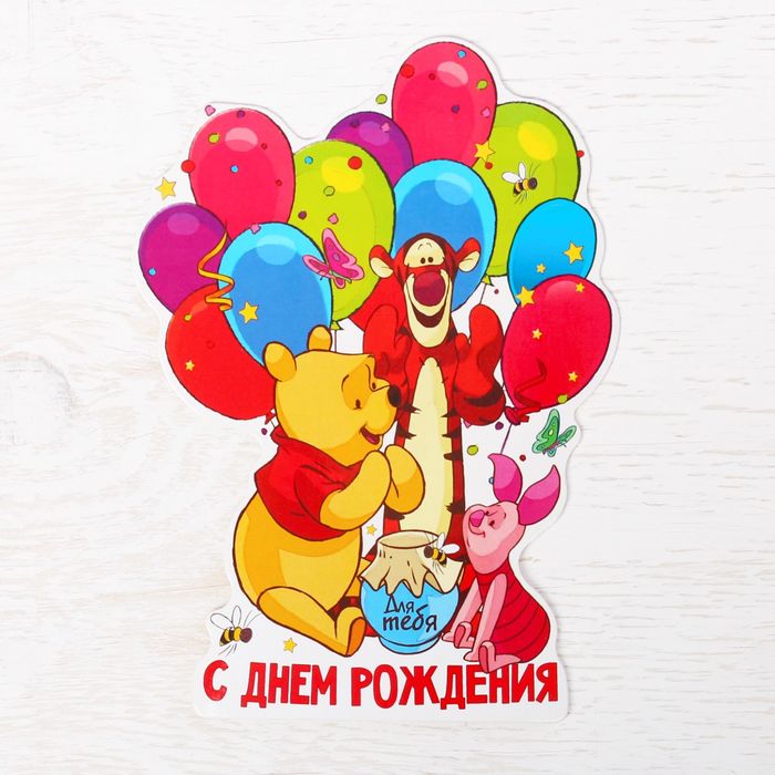 Открытка формовая "С Днем Рождения", Медвежонок Винни и его друзья
