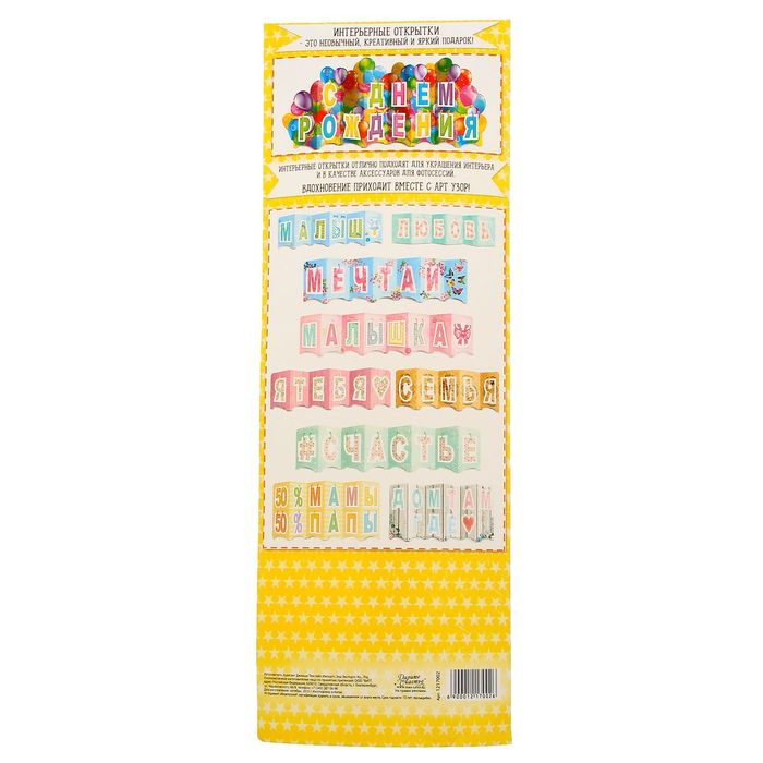 Стильная оригинальная интерьерная открытка — отличное украшение для дома, креативный сувенир на праздник и аксессуар для фотосессии! Получив чудесные снимки, поставьте изделие на полку, стол или повесьте как гирлянду на кнопки или клейкую ленту. Яркие цвета, двусторонняя печать и неповторимый дизайн будет долго радовать обладателей и напоминать о счастливых моментах.