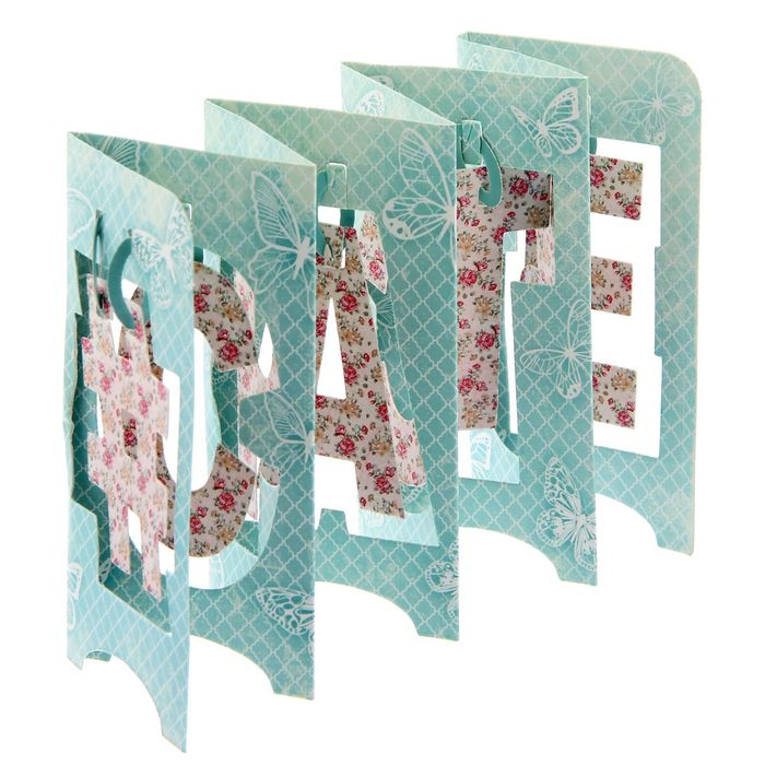 Расправьте основу, подвесьте картонные буквы на специальные замочки и наслаждайтесь результатом!