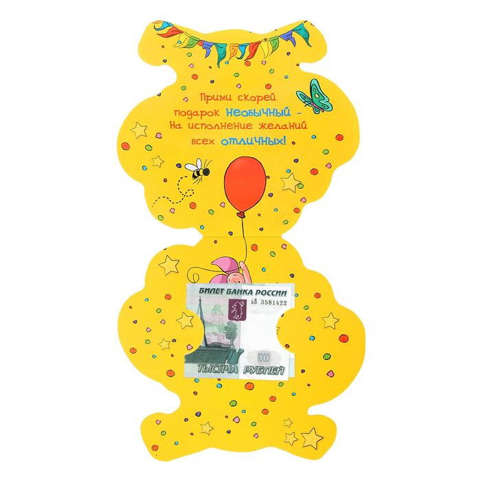 Открытка-конверт для денег "Для тебя": Медвежонок Винни