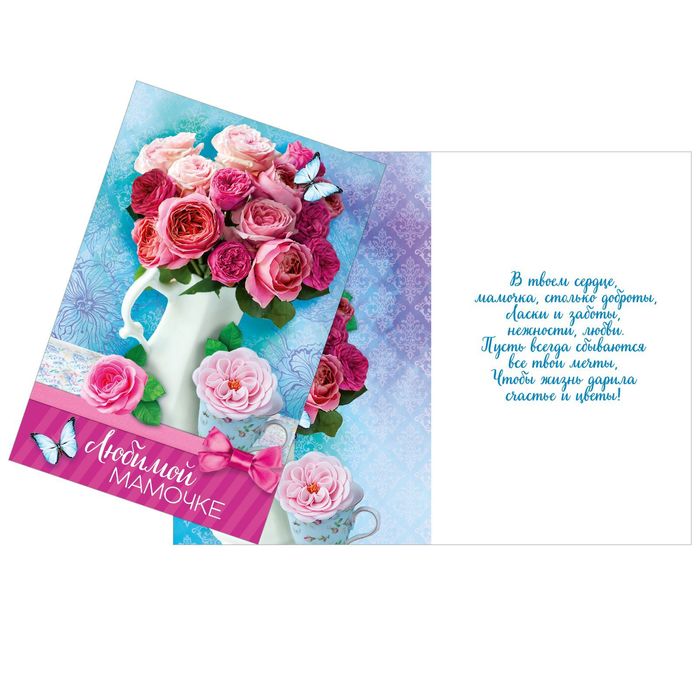 Открытка "Любимой мамочке",розовые розы, 12х18 см