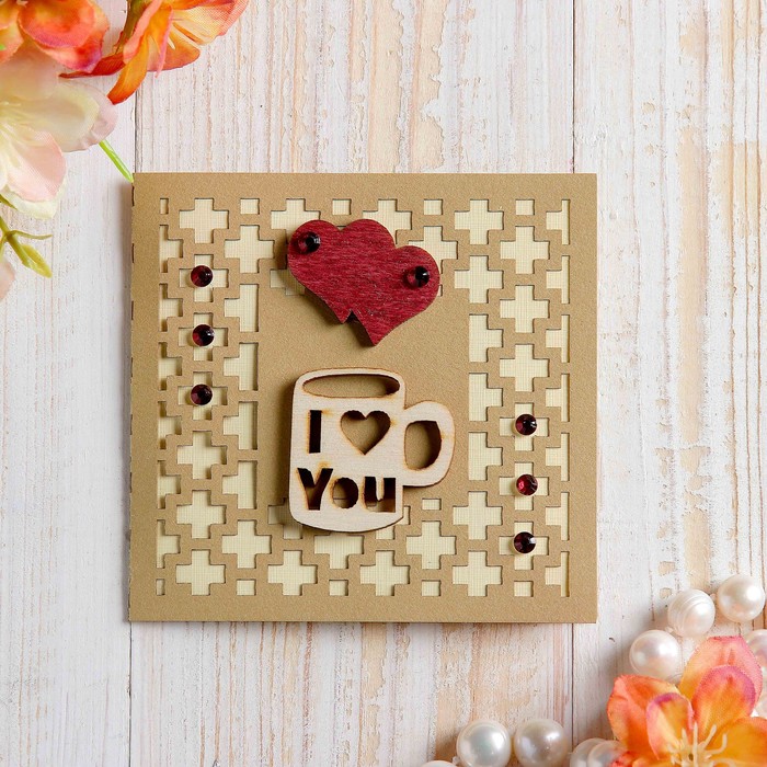 Открытка-мини "I love you" кружка, ручная работа