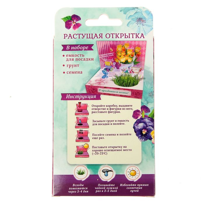 Там, где зима длится полгода, нам так не хватает солнца и зелени. Растущий сувенир — новый, набирающий популярность в мире подарков тренд решит эту проблему! Теперь вы можете вырастить прекрасный газон прямо на рабочем столе или на полке. В комплекте уже есть всё необходимое для получения свежей зелени: яркая и эффектная коробочка-открытка, грунт и семена.