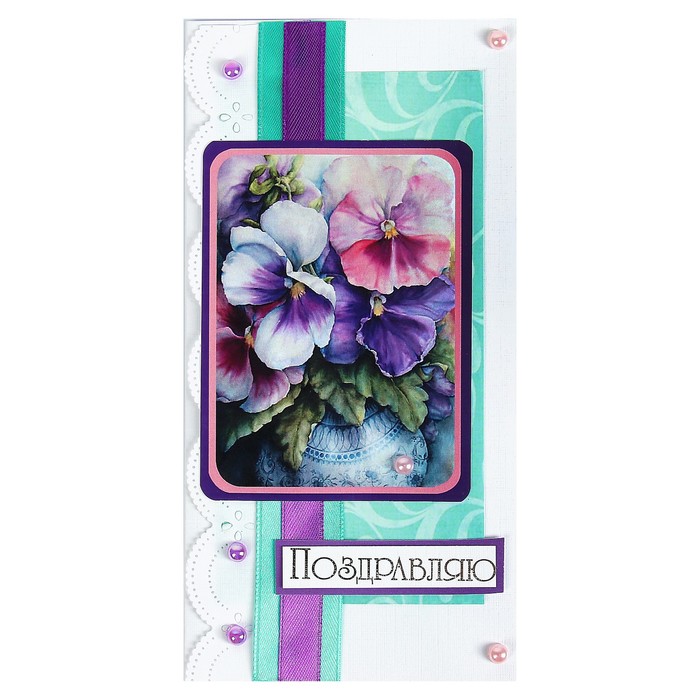 Открытка ручной работы "Поздравляю!", евро, анютины глазки