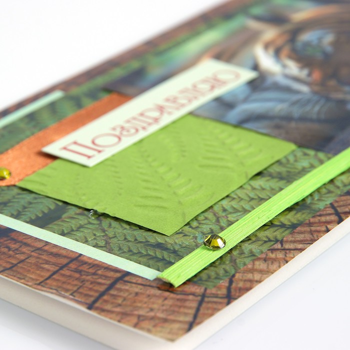 Открытка ручной работы "Поздравляю!", евро, тигр