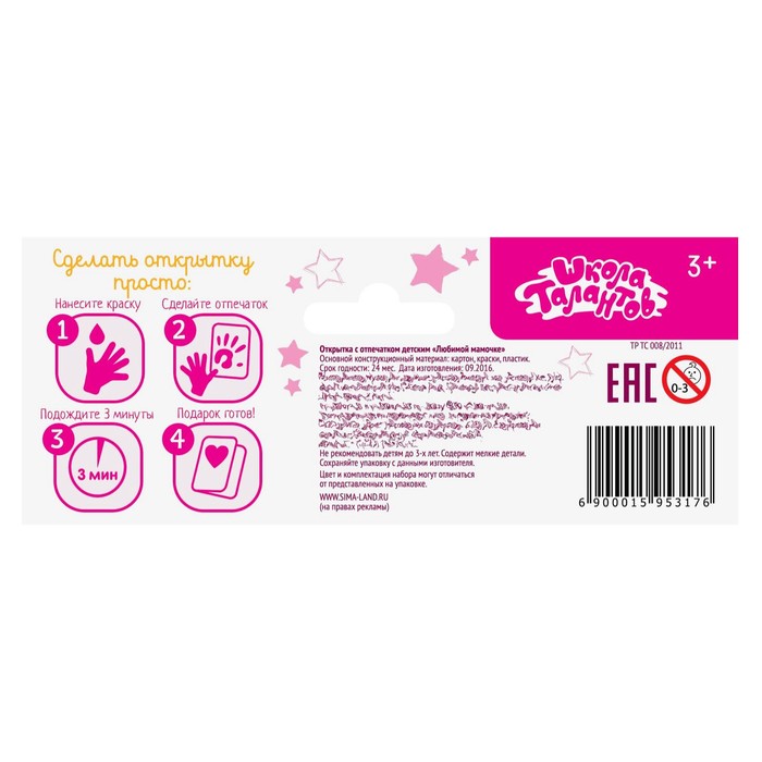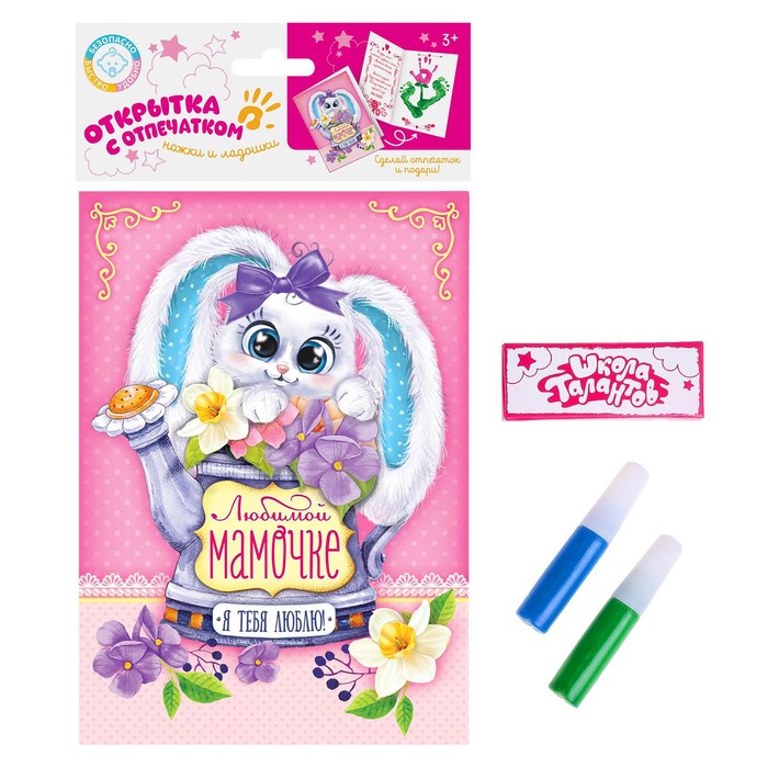 Открытка с детским отпечатком "Любимой мамочке"