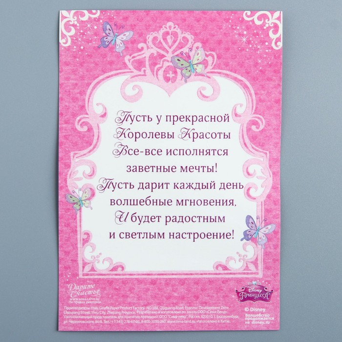 Открытка с магнитом-рамкой "С Днем Рождения. Поверь в сказку", Принцессы