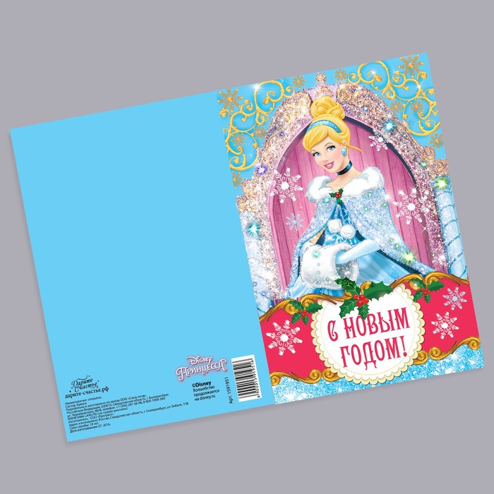 Открытка "С новым годом", Принцесса, Золушка, 12 х 18 см, с глиттером (блёстками)