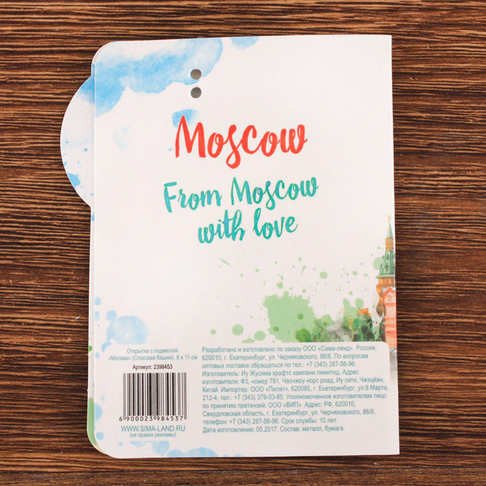 Открытка с подвеской «Москва» (Спасская башня), 8 х 11 см — сувенир в полном смысле этого слова. И главная его задача — хранить воспоминание о месте, где вы побывали, или о том человеке, который подарил данный предмет. Преподнесите эту вещь своему другу, и она станет достойным украшением его дома.