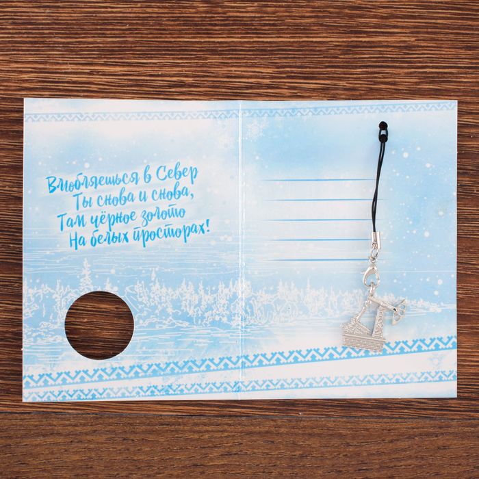 Открытка с подвеской «СЕВЕР» (нефтяная вышка), 8 х 11 см