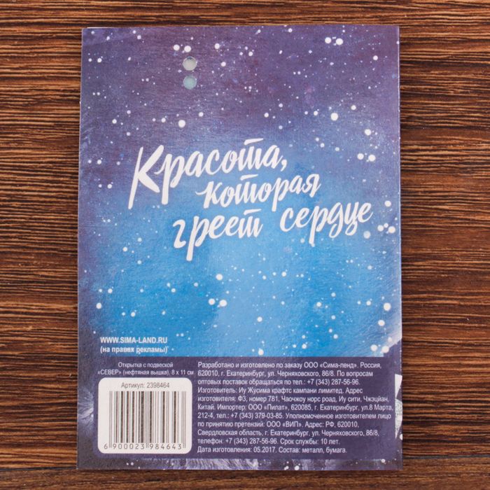 Открытка с подвеской «СЕВЕР» (нефтяная вышка), 8 х 11 см — сувенир в полном смысле этого слова. И главная его задача — хранить воспоминание о месте, где вы побывали, или о том человеке, который подарил данный предмет. Преподнесите эту вещь своему другу, и она станет достойным украшением его дома.