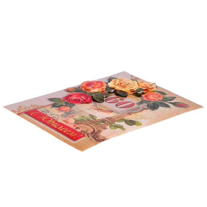 Открытка "С Юбилеем! 60" розы, Париж, А4