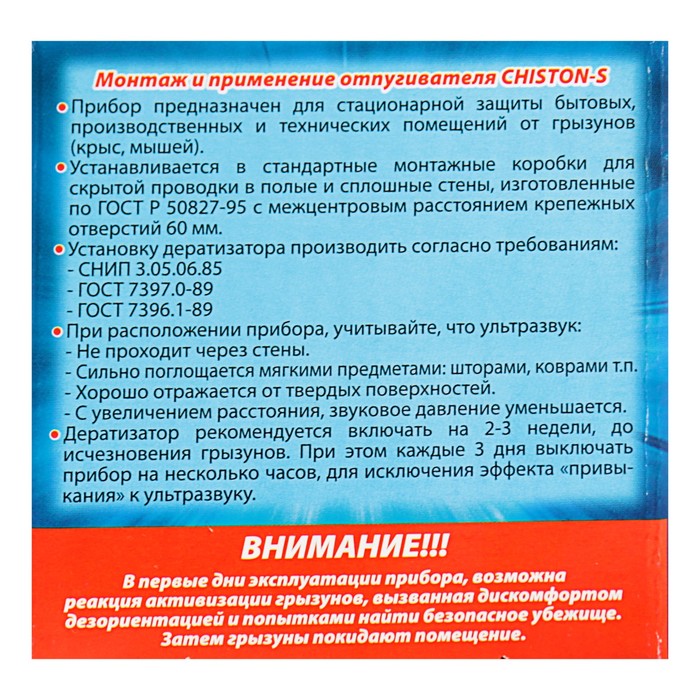 Отпугиватель грызунов CHISTON-S, ультразвуковой