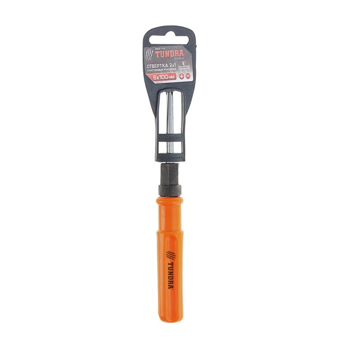 Отвертка 2 в 1 TUNDRA basic, PH2 и SL 6х100 (+/-), пластиковая рукоятка ОРАНЖЕВАЯ