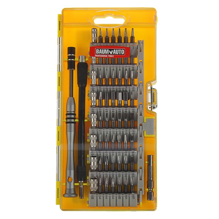 Отвертка для точных работ BaumAuto, телескоп. с удлинителем, с битами и головками, 59пр.