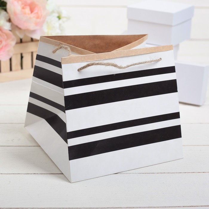 Пакет для цветов "Полосы" 19 х 19 х17 см