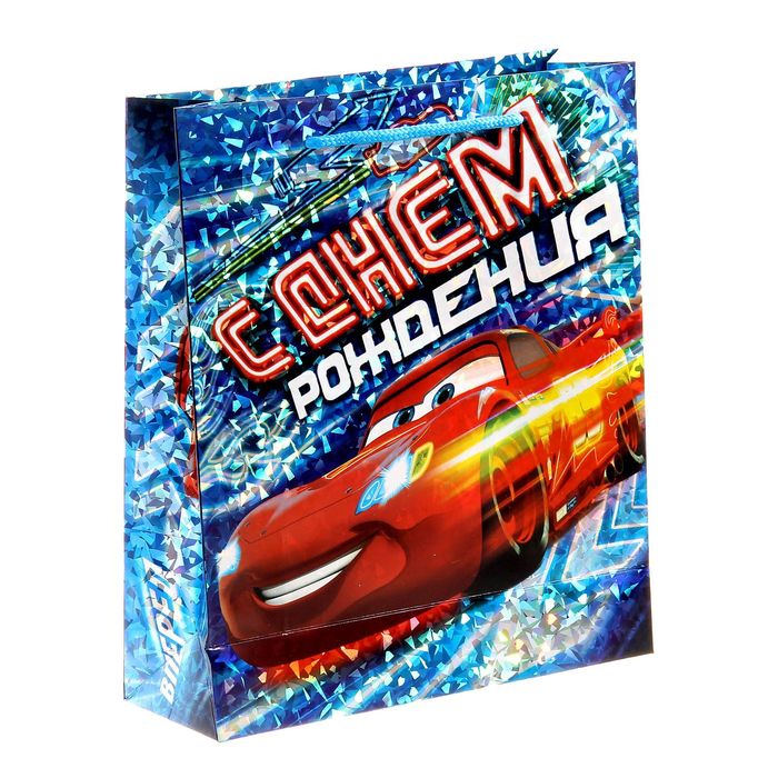 Пакет голография вертикальный "С днем рождения!", Тачки, 23 х 27 см