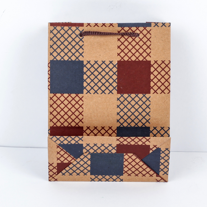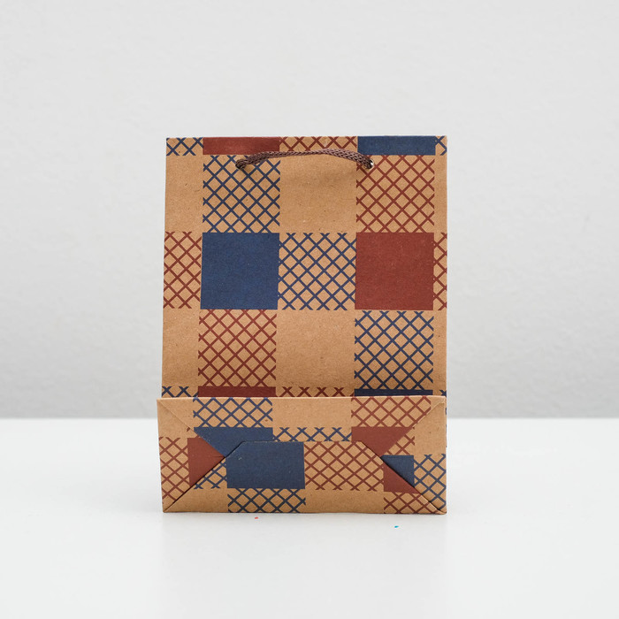 Пакет крафт "Клетка", 11 х 5,5 х 14,5 см