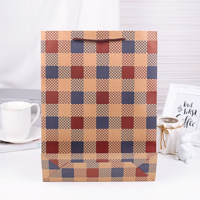 Пакет крафт "Клетка", 27 х 9 х 37 см