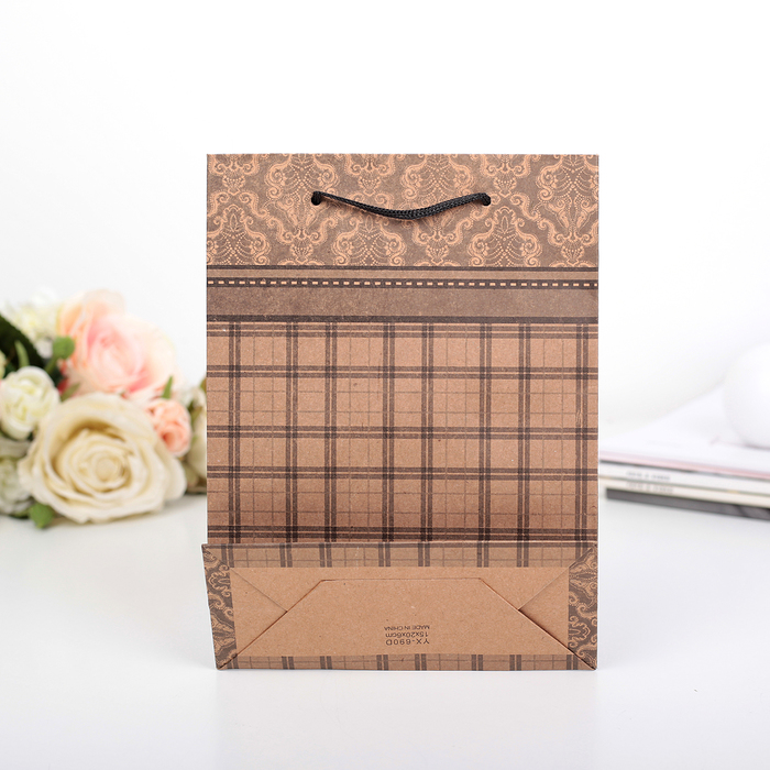 Пакет крафт "Клетка классическая", 15 х 6 х 20 см