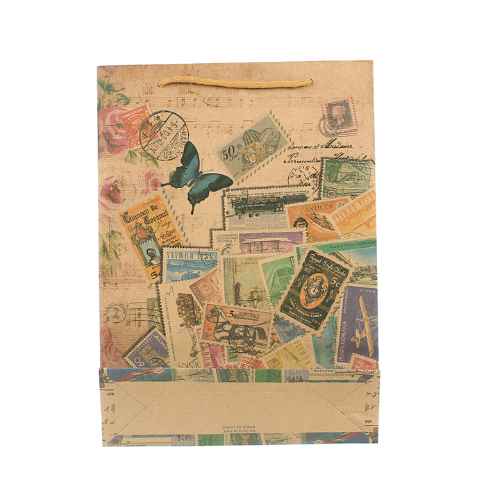 Пакет крафт "Марки", 24 х 8 х 33 см