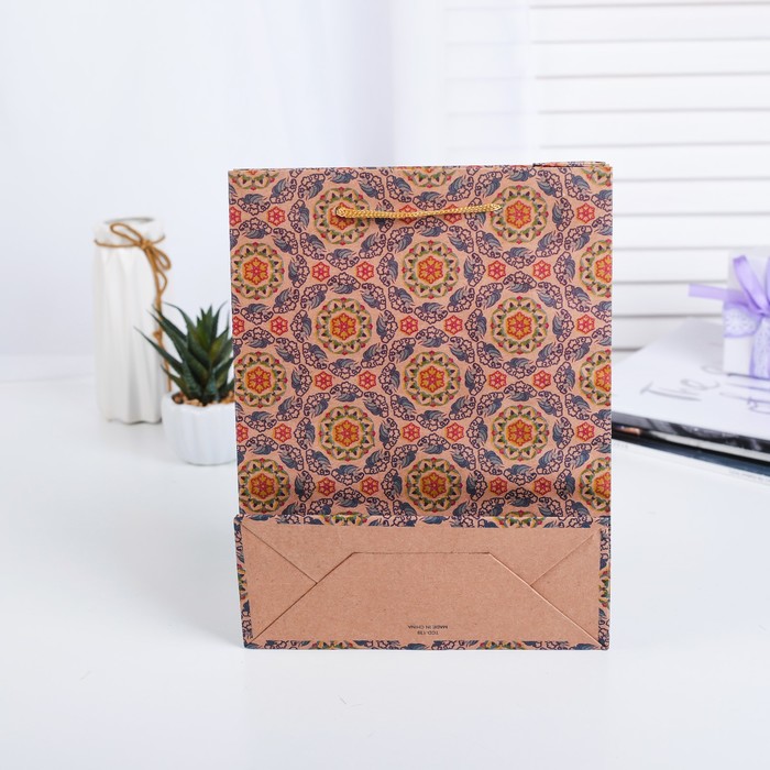 Пакет крафт "Орнамент, 19 х 25 х 8 см