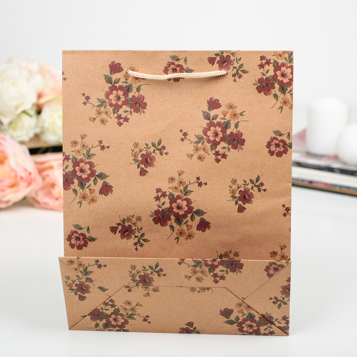 Пакет крафт "Полевые цветы", 15 х 6 х 20 см