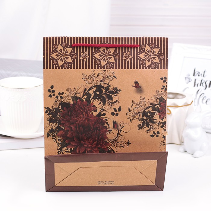 Пакет крафт "Распустившийся цветок, 19 х 8 х 25 см