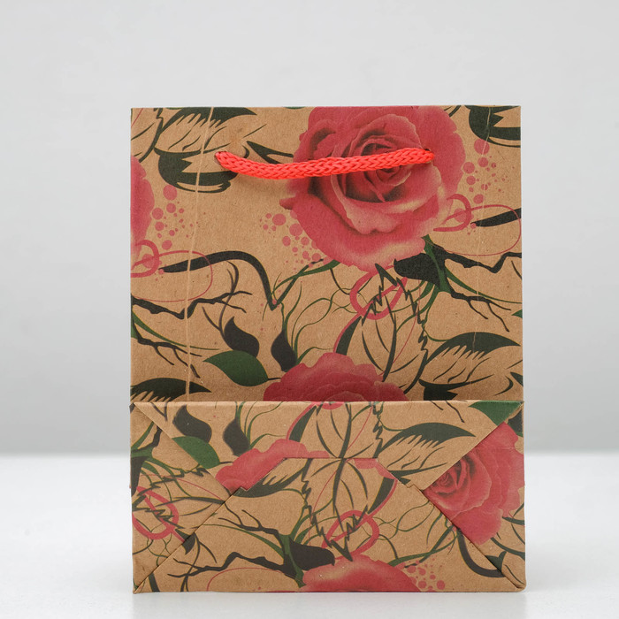 Пакет крафт "Розы", 12 х 15,5 х 5,5 см