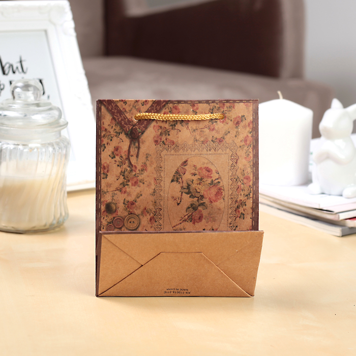 Крафт-пакет «Винтаж» из натуральной бумаги отличается высокой воздухопроницаемостью, имеет крепкое дно и кручёные ручки. Также он свободно выдерживает относительно большой вес (до 10 кг), демонстрируя отличные показатели прочности, и не рвётся острыми углами подарочной коробки.