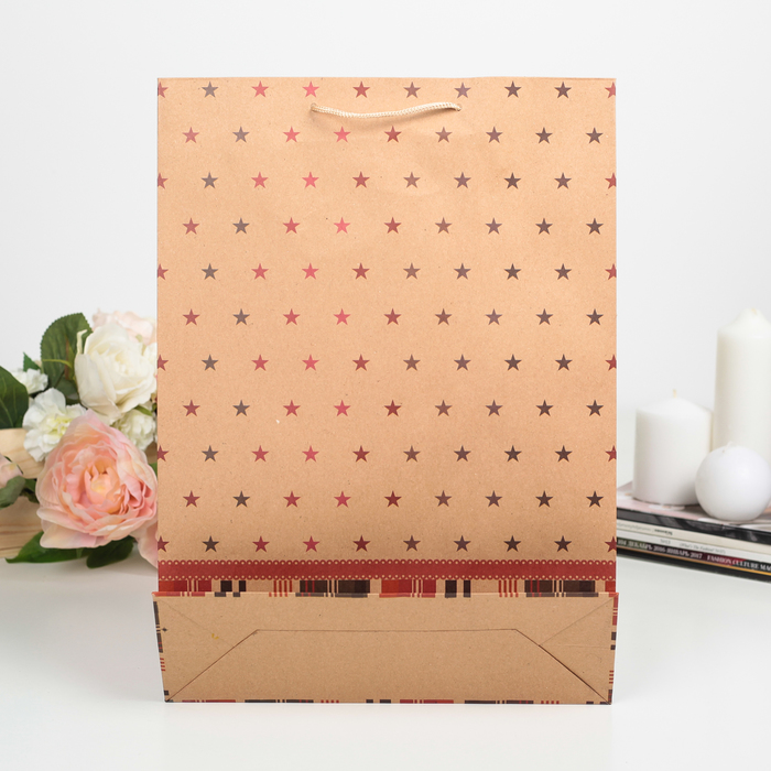 Пакет крафт "Звёзды", 27 х 9 х 37 см