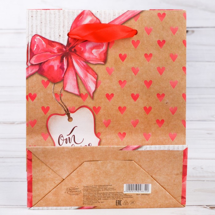 Любой подарок начинается с упаковки. Что может быть трогательнее и волшебнее, чем ритуал разворачивания полученного презента. И именно оригинальная, со вкусом выбранная упаковка выделит ваш подарок из массы других. Она продемонстрирует самые тёплые чувства к виновнику торжества и создаст сказочную атмосферу праздника. Пакет крафтовый вертикальный «От всего сердца», MS 18 × 23 × 8 см — это то, что вы искали.
