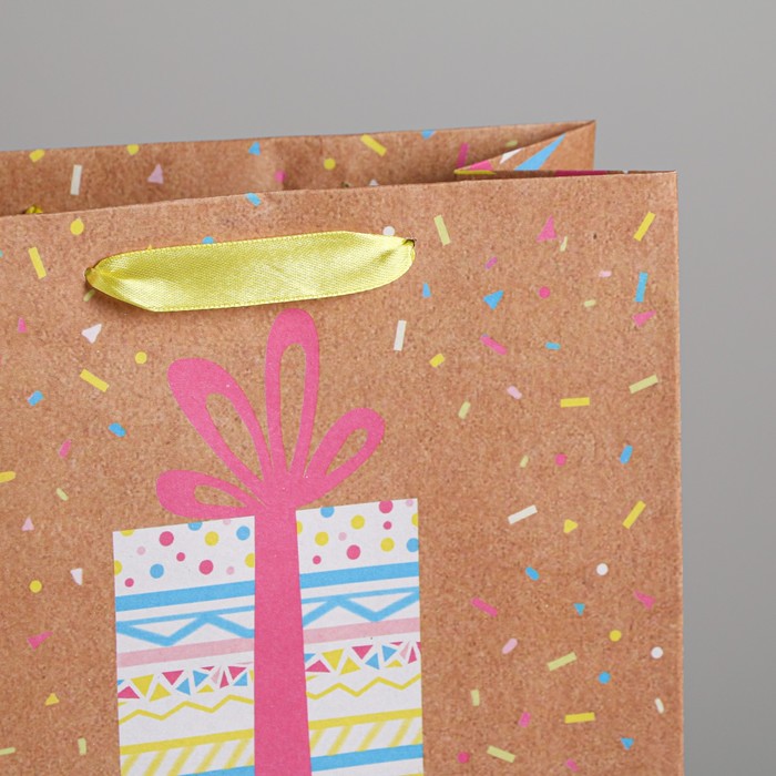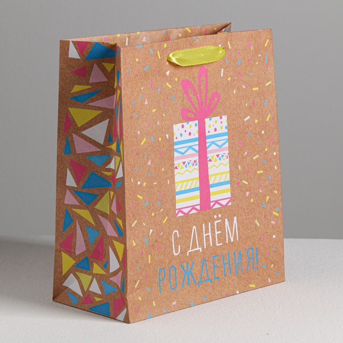 Пакет крафтовый вертикальный «Подарков в день рождения!», ML 23 × 27 × 11,5 см