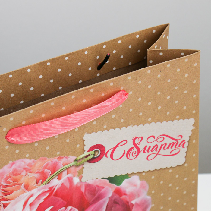 Пакет крафтовый вертикальный «С 8 Марта!», 12 × 15 × 6 см