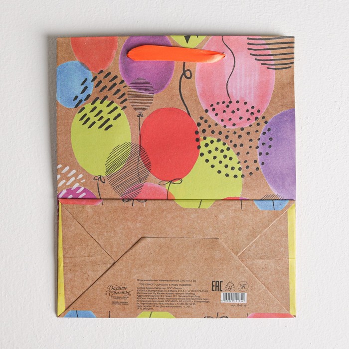 Любой подарок начинается с упаковки. Что может быть трогательнее и волшебнее, чем ритуал разворачивания полученного презента. И именно оригинальная, со вкусом выбранная упаковка выделит ваш подарок из массы других. Она продемонстрирует самые тёплые чувства к виновнику торжества и создаст сказочную атмосферу праздника. Пакет крафтовый вертикальный «С Днём Рождения поздравляю!», MS 18 × 23 × 10 см — это то, что вы искали.