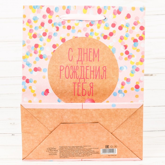 Любой подарок начинается с упаковки. Что может быть трогательнее и волшебнее, чем ритуал разворачивания полученного презента. И именно оригинальная, со вкусом выбранная упаковка выделит ваш подарок из массы других. Она продемонстрирует самые тёплые чувства к виновнику торжества и создаст сказочную атмосферу праздника. Пакет крафтовый вертикальный «С Днём Рождения Тебя!», S 15 × 12 × 5,5 см — это то, что вы искали.