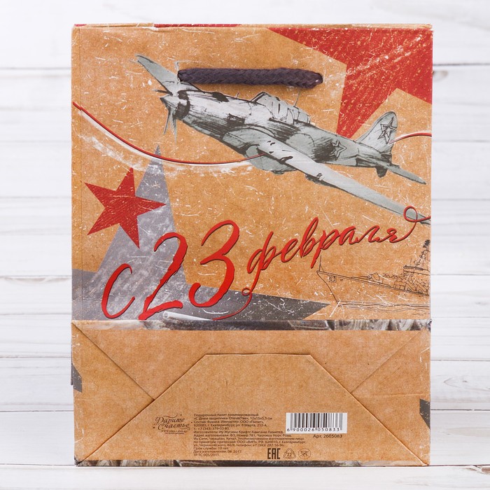 Любой подарок начинается с упаковки. Что может быть трогательнее и волшебнее, чем ритуал разворачивания полученного презента. И именно оригинальная, со вкусом выбранная упаковка выделит ваш подарок из массы других. Она продемонстрирует самые тёплые чувства к виновнику торжества и создаст сказочную атмосферу праздника. Пакет крафтовый вертикальный «С днём защитника отечества», 12 × 25 × 6 см — это то, что вы искали.